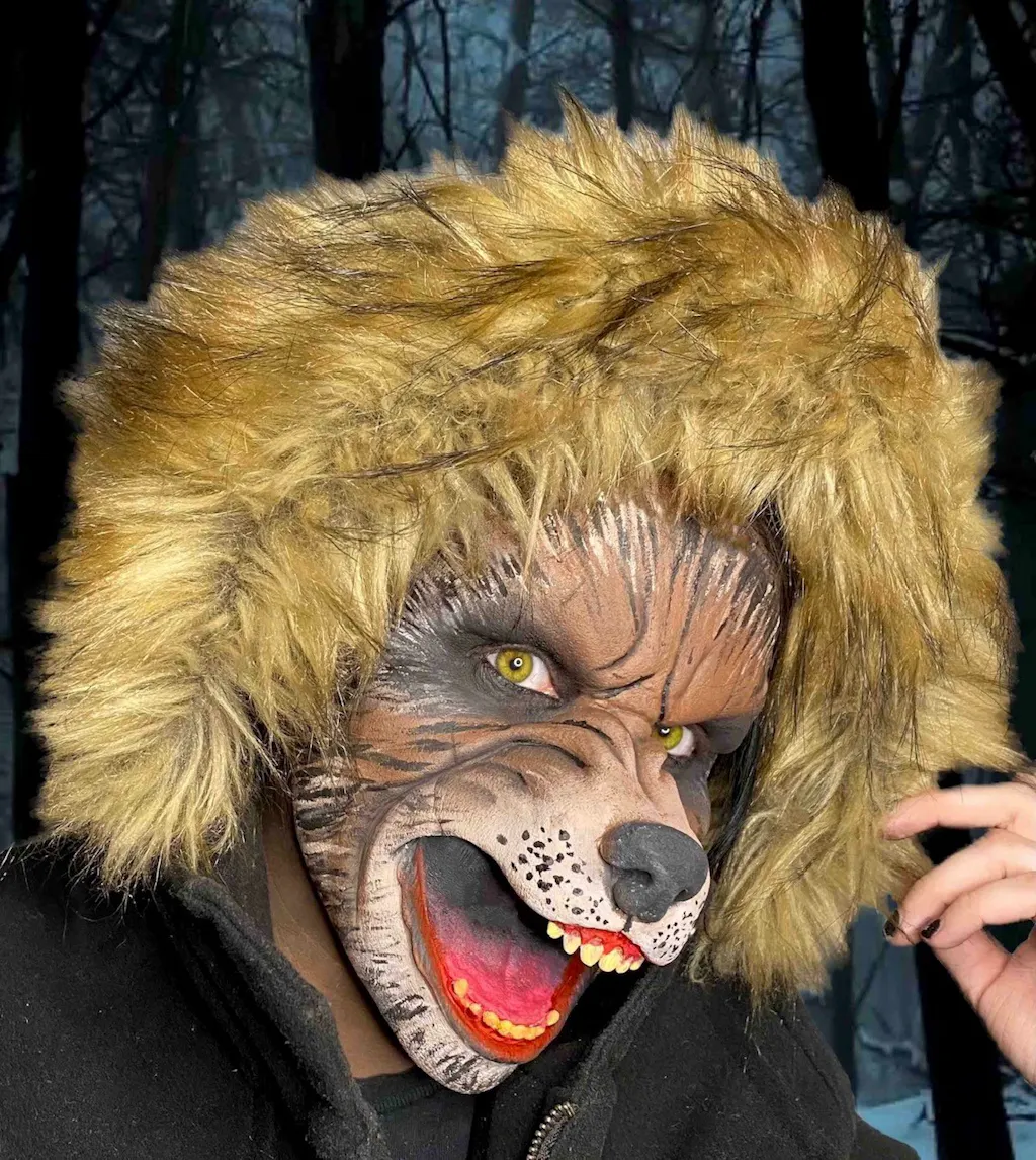 Woochie Pro's Big Bad Wolf is a bold piece with very pronounced muzzle that shows off those big teeth (all the better to eat you with). This is a soft foam latex professional quality appliance mask made of the same material used in TV and Film. Realistic makeup FX masks bring your costume to life. When applied this mask moves with your expressions just like professional Hollywood movie makeup. This appliance can be worn for hours in relative comfort.