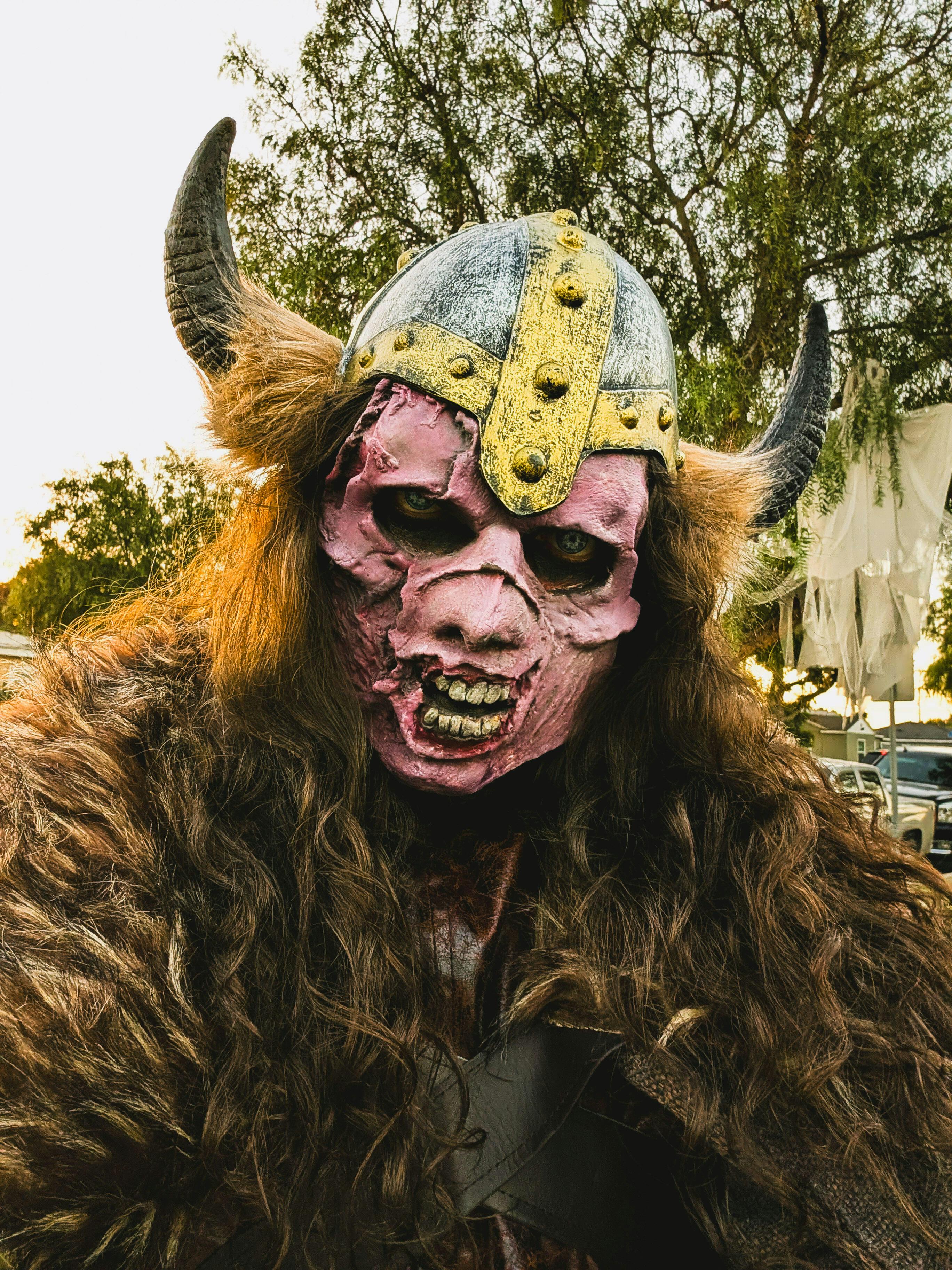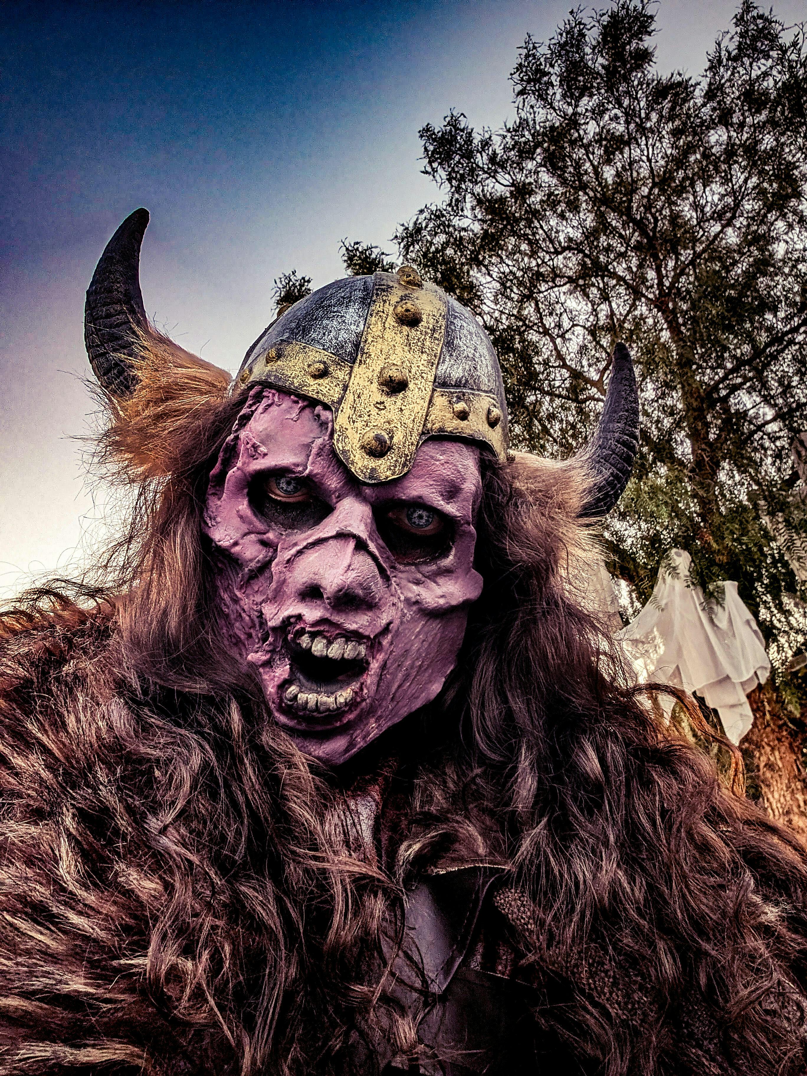 Foam latex zombie mask with its' skull exposed. The gaping wound on the mask is great for gore makeup work.