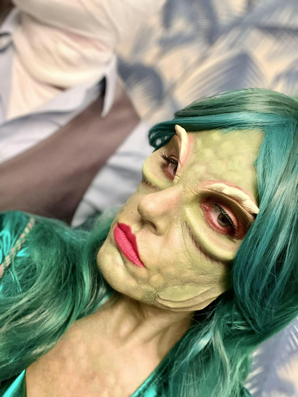 I used the Xan Demon eye piece and “Costume Gills” pieces with the recommended rubber mask grease paint to create a Swamp Thaang look for a Creature Feature-themed ball. I am artistic but have never done any Fx makeup before. The appliances were easy to apply and fun to paint. Super comfortable to wear. Received compliments all night. I can’t wait to try another look for Halloween.