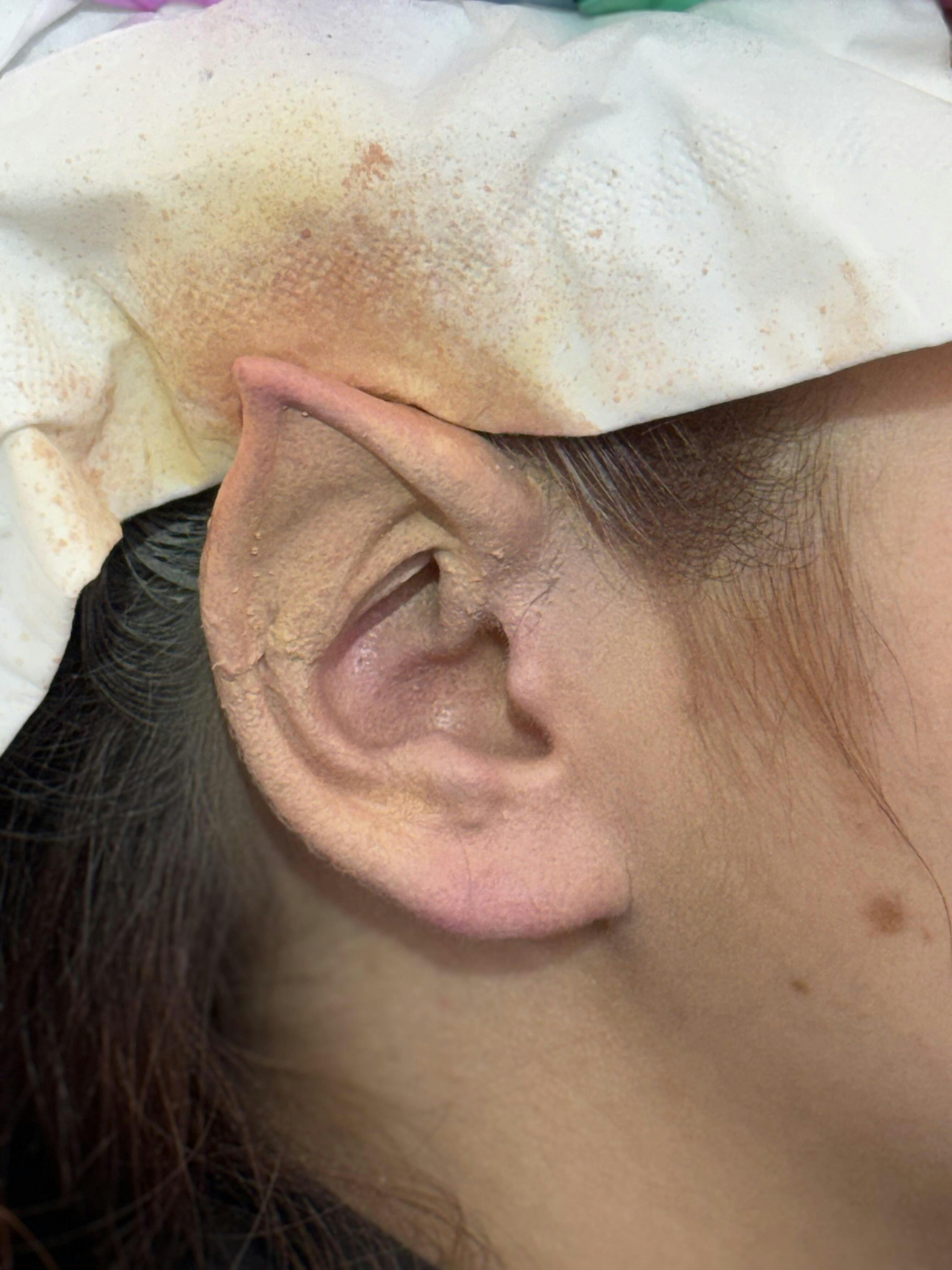 This is a foam latex appliance that extends your ears for a pixie or Trek look. It can be used along with any of our full face prosthetics to round out your look.