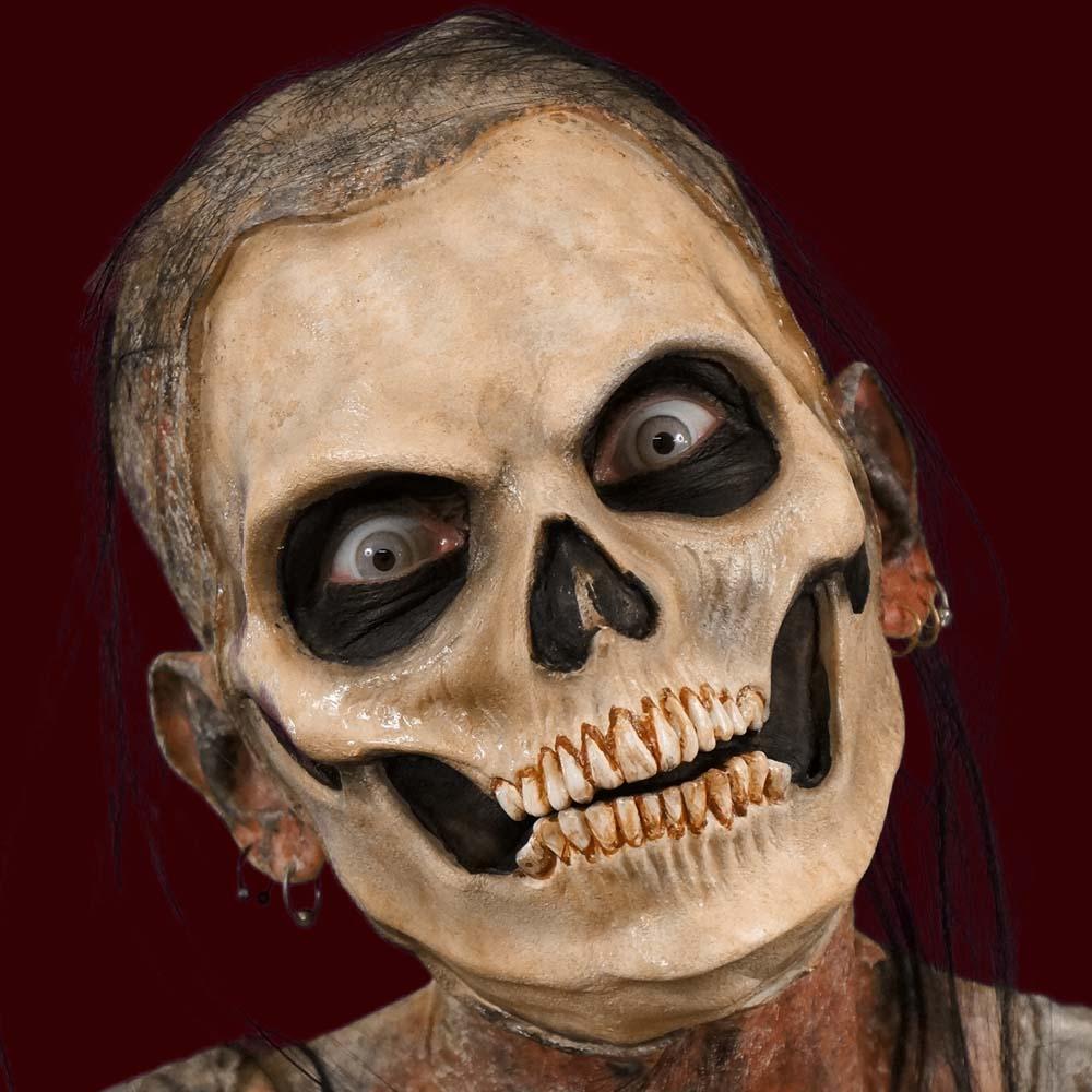 Rip your zombie face off to reveal your skull underneath! This is a two layer prosthetic with 16 mini magnets that hold the top skin on until you are ready to tear it off. Snap your skin back in place and tear it away for your next scare.
