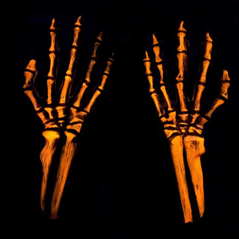 These UV Reactive Orange Glow Skeleton Hands will illuminate your whole look! They are perfect for Actors, Halloween and Haunted Houses.