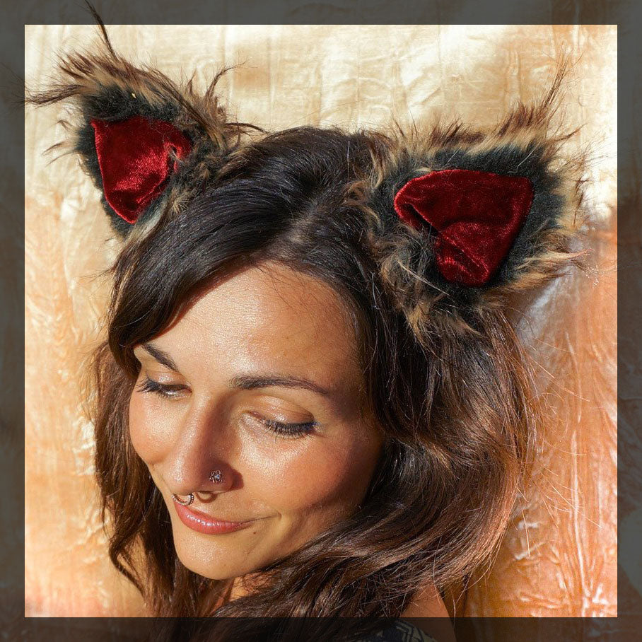 These handmade clip-on ears match vintage velour with a super soft multi tone brown/beige/black fur. Snap these furry ears on with your best wolf suit and tie and you'll be the cat's meow at your next event.