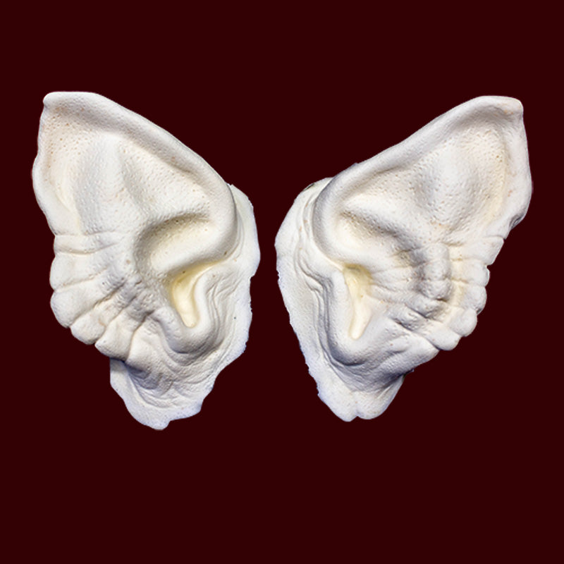 Fairly Large latex ears, with a fanned-out look that protrudes slightly outward from the head. These ears are made to go with male and female Ogre looks, but work well for other fantasy characters as well.